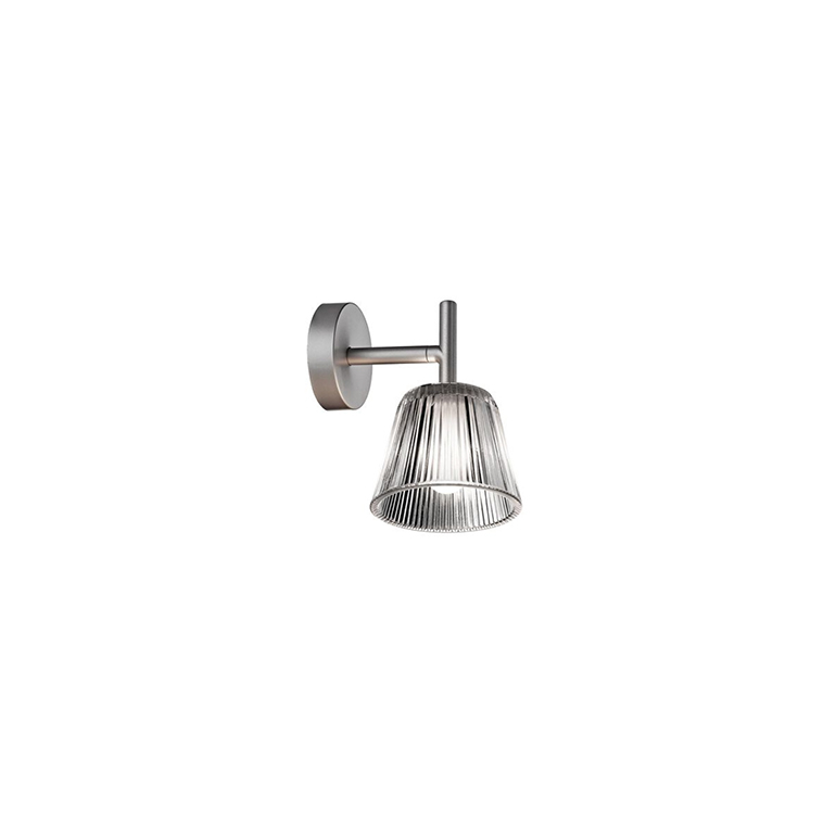 提供漫射照明的壁灯。酸蚀刻压硼硅酸盐玻璃内部扩散器。Plissé布料阴影。灰色涂漆压铸铝扩散器和灯支撑。灰色油漆,注塑聚碳酸酯墙壁配件和玫瑰。