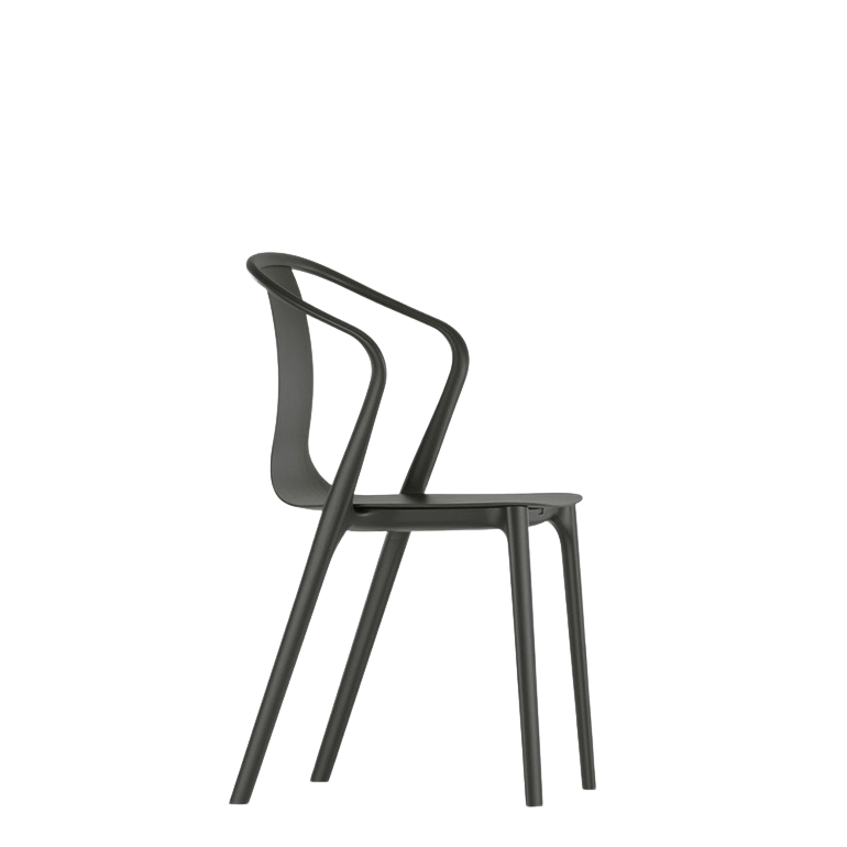 模压胶合板贴面座椅外壳和细长的黑色塑料框架的对比材料构成了 Belleville 扶手椅的特征。其优雅的扶手是弯曲结构框架的一个组成部分,提供极佳的舒适度。Belleville 扶手椅还提供塑料座椅外壳或皮革或织物罩