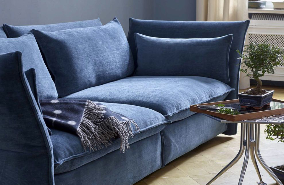 令人愉悦的柔软内饰以及可调节至约 30° 向外角度的侧面板和背面板为 Edward Barber 和 Jay Osgerby 设计的 Mariposa 沙发(2014 年)带来非凡的舒适感。